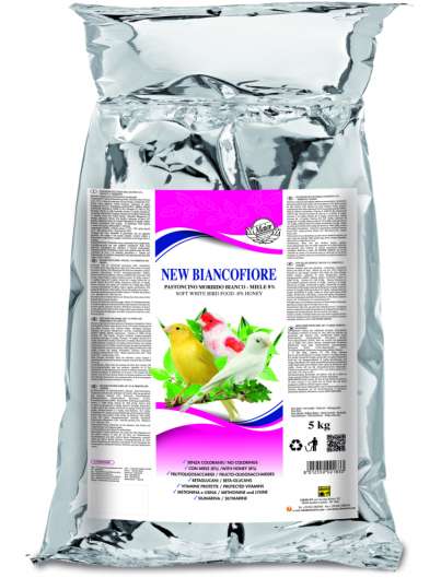 Instrucciones de uso: cría: mezclar 800 g de NEW BIANCOFIORE con 200 g de NUTRIENT SPECIAL. Muda: administrar como es. Descanso: suministrar como es durante 3 días a la semana.